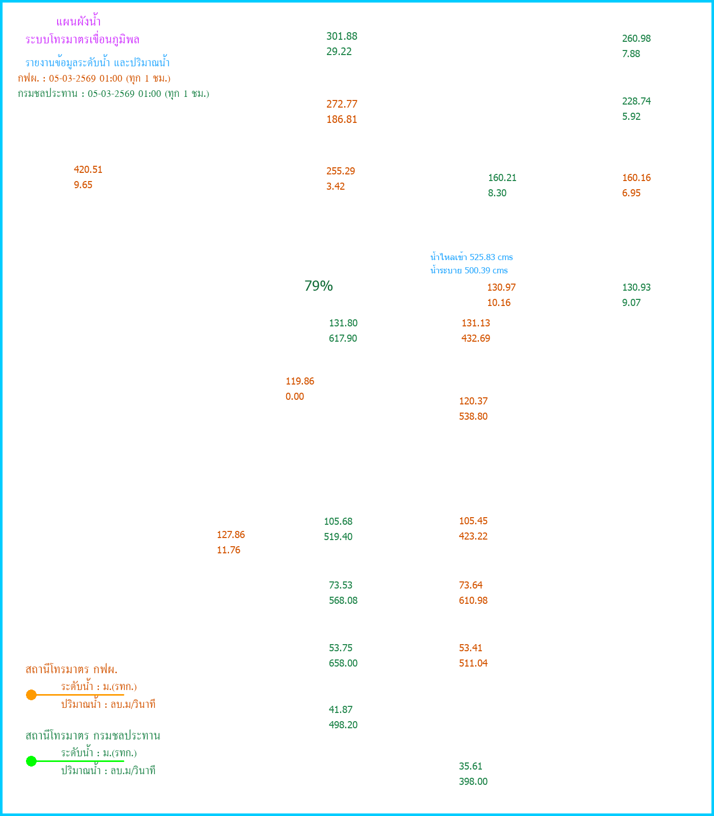 | 9 | W.1C | สะพานเสตุวารี อ.เมืองลำปาง จ.ลำปาง | -0.56 | 228.74 | 5.92 | 04-03-2569 16:00:00 | 651.00 |